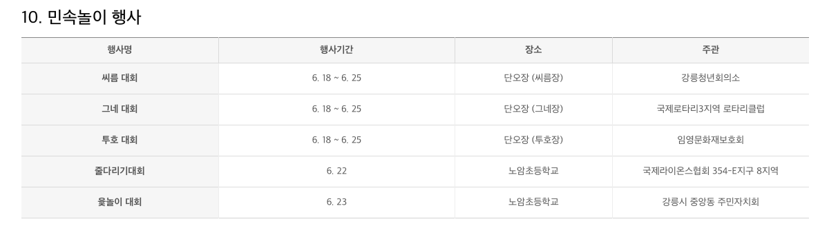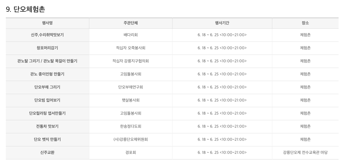 2023년 6월 강릉단오제 행사 일정 및 장소