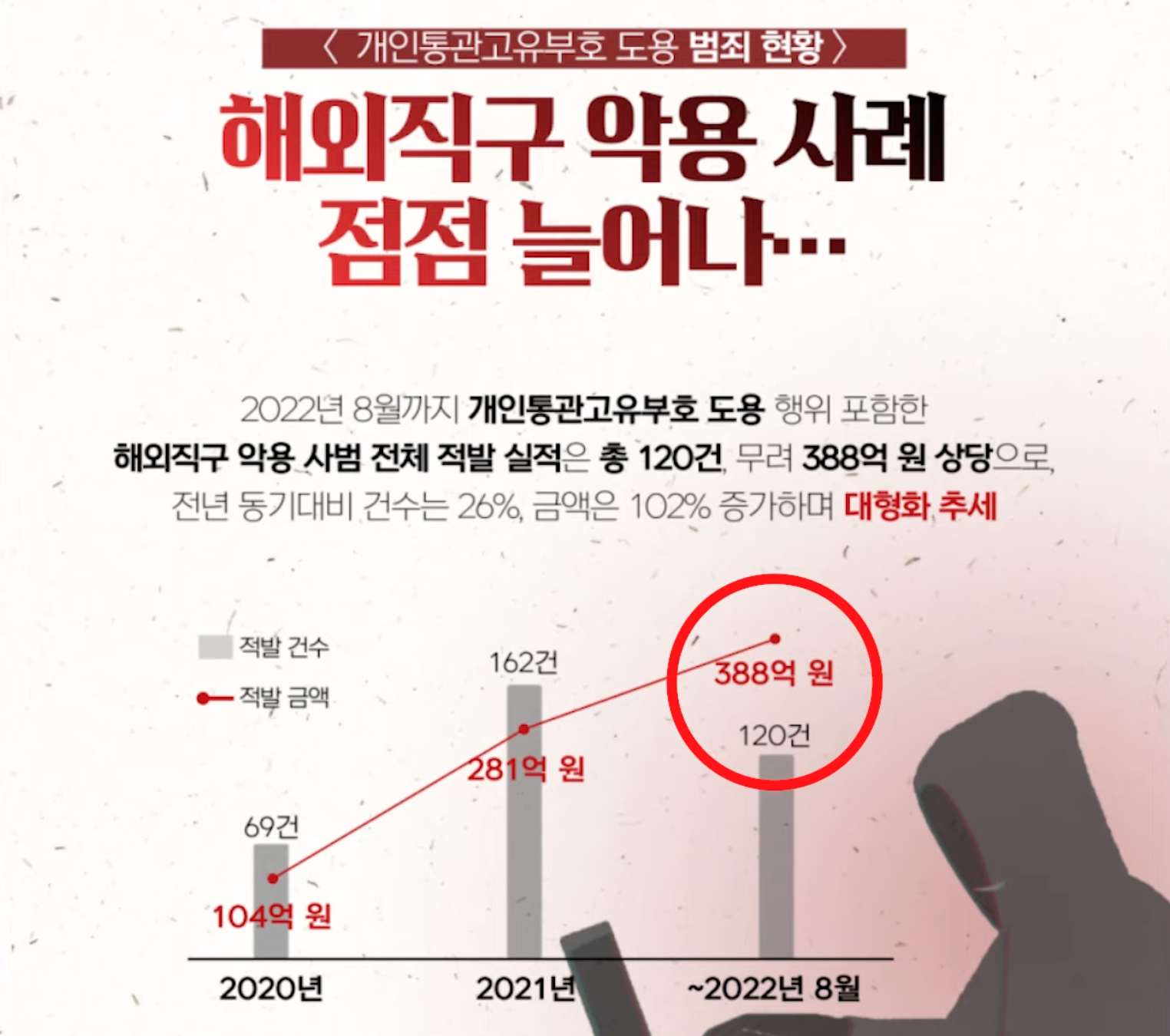최근에 해외직구가 늘어남에 따라 개인통관고유부호 명의 도용 사기가 급증하고 있습니다. 개인통관고유부호를 이용해서 탈세와 수입요건을 회피하는 사기가 늘어가고 있습니다. 그렇기 때문에 이 번호가 주민번호도 아닌데 알려줘도 되겠지라고 쉽게 생각하면 안되겠습니다.