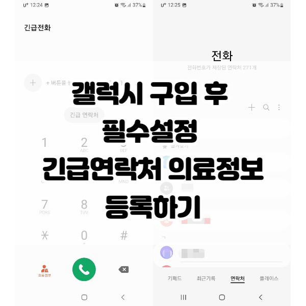 스마트폰은 이제는 또 다른 나라고 할 수 있습니다. 나에 대한 정보의 모든 것을 담고 있다고 할 수 있겠습니다. 그렇다 보니 잠금 설정을 필수라고 할 수 있겠습니다. 그러나 잠금이 되어 있는 경우 문제점 중 하나가 위급한 상황이 생겼을 때 보호자에게 연락할 수 있는 방법이 없다는 것입니다. 그러나 갤럭시에는 긴급연락처와 의료정보를 설정 할 수 있습니다. 그렇기 때문에 갤럭시 구입 하셨다면 필수로 설정하시는 것을 추천드리겠습니다.