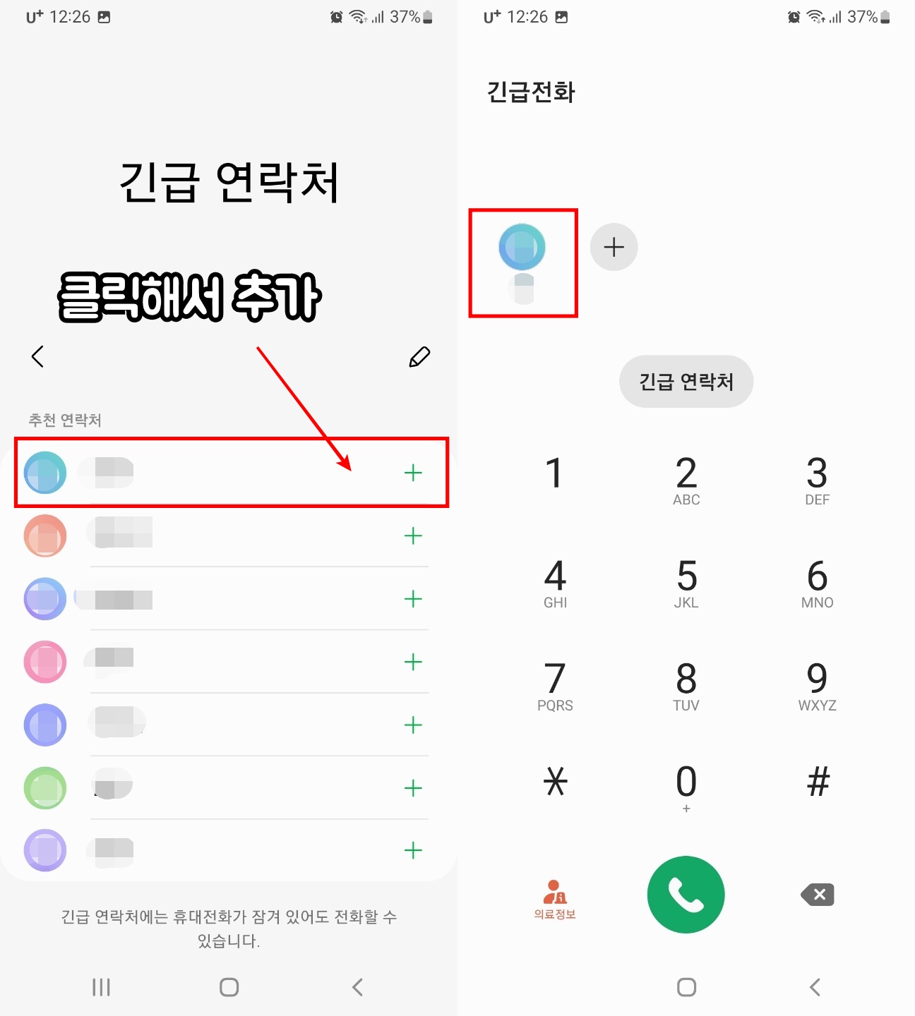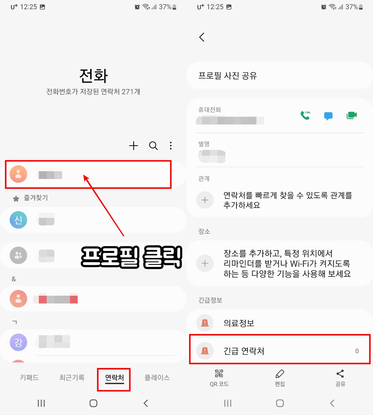 전화 - 연락처 - 내 프로필 클릭 - 긴급연락처