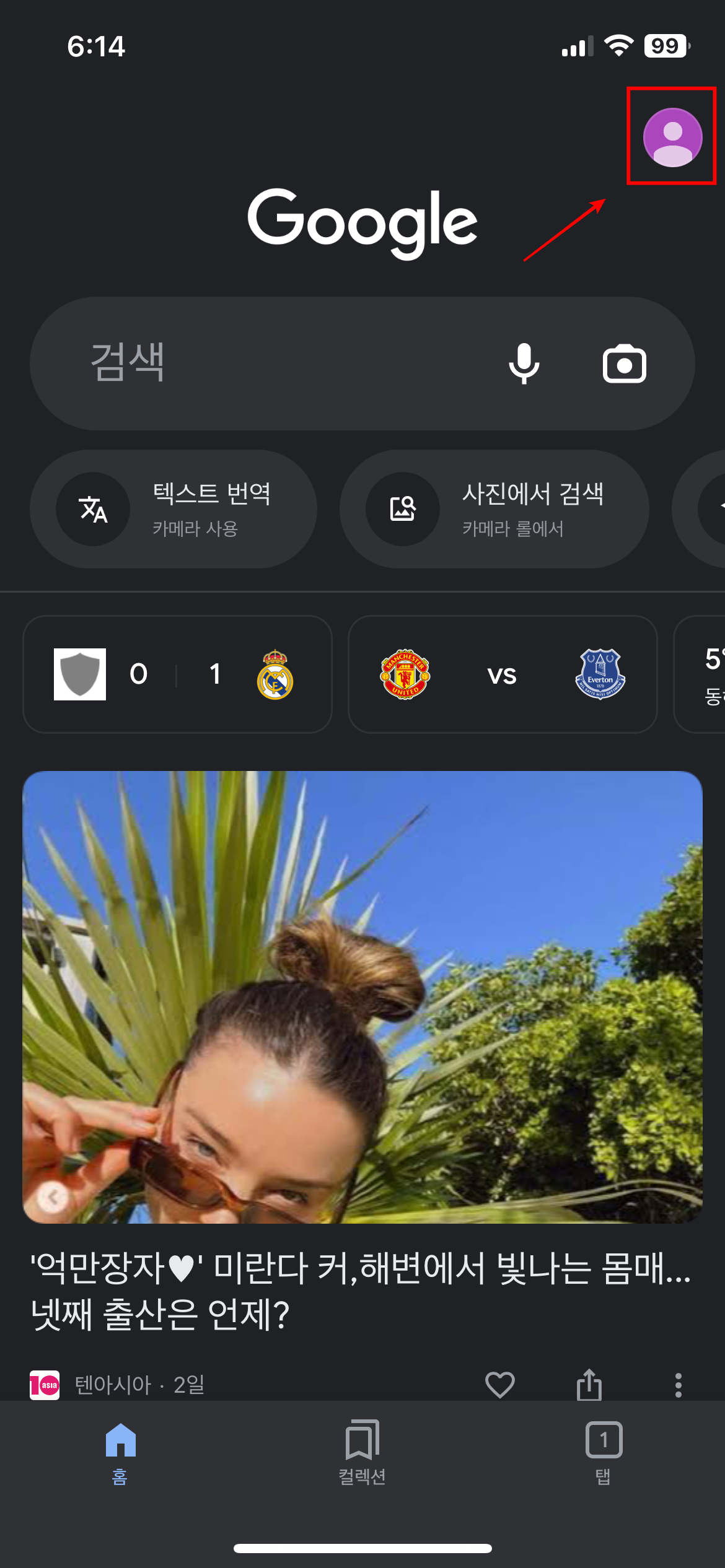 1. 구글 검색기록 삭제를 위해서는 프로필 클릭하고 계정관리를 들어갑니다.