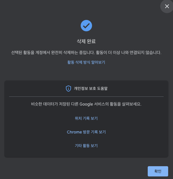 4. 삭제 기간과 활동을 선택하면 바로 삭제가 가능합니다.