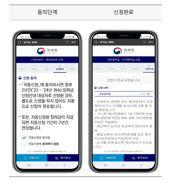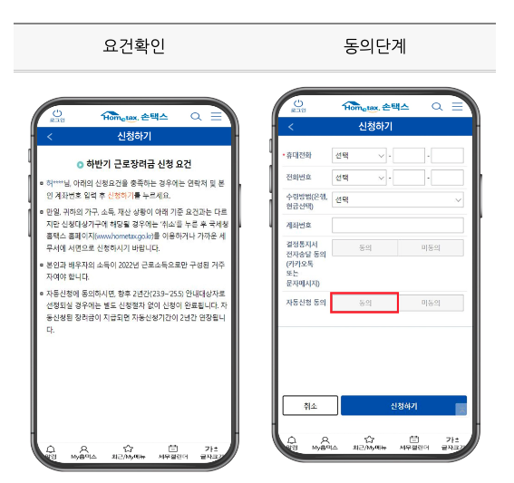 손택스(모바일) : 신청/제출 - 근로장려금(반기) - 신청
