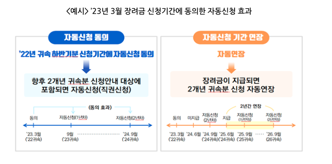 자동신청이 가능한 대상은 고령자와 중증장애인입니다. 신청이 어려운 분들에게 자동신청이 되게 됩니다. 자동신청은 반기신청(상반기, 하반기), 정기신청 중 1번만 신청하면 됩니다.