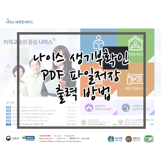 생기부는 학생뿐 아니라 학부모 그리고 졸업생까지 필요한 서류로써 제출해야하는 곳이 많은데요. 인터넷에서 간편하게 확인하고 PDF파일로 저장하고 출력하는 방법에 대해서 정리해서 알려드리겠습니다.
