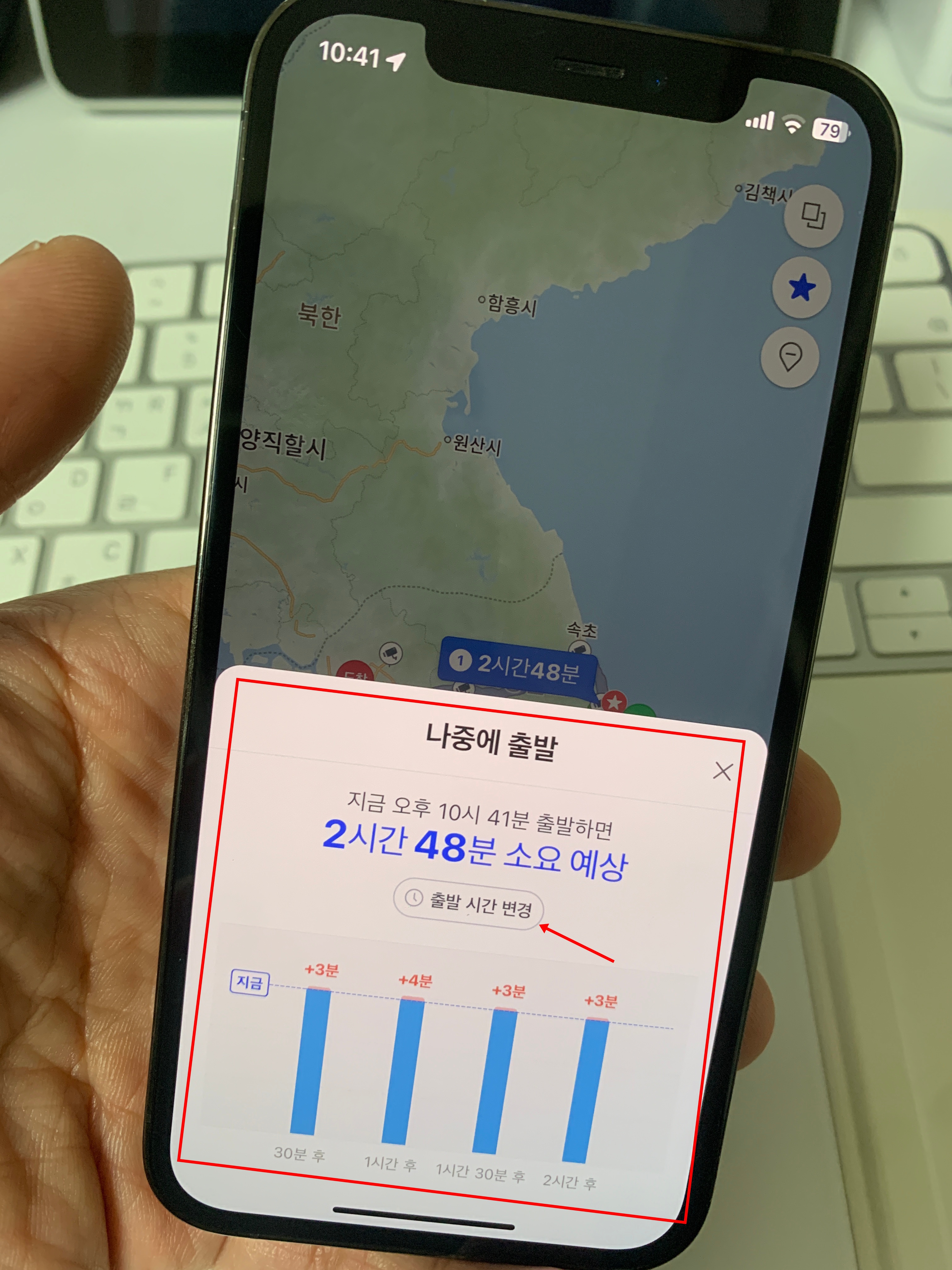 3. 만약 현재 출발시간이 아닌 다음날이나 이후에 출발 시간으로 잡게 된다면 예상소요 시간을 상황에 따라 알려주게 됩니다.