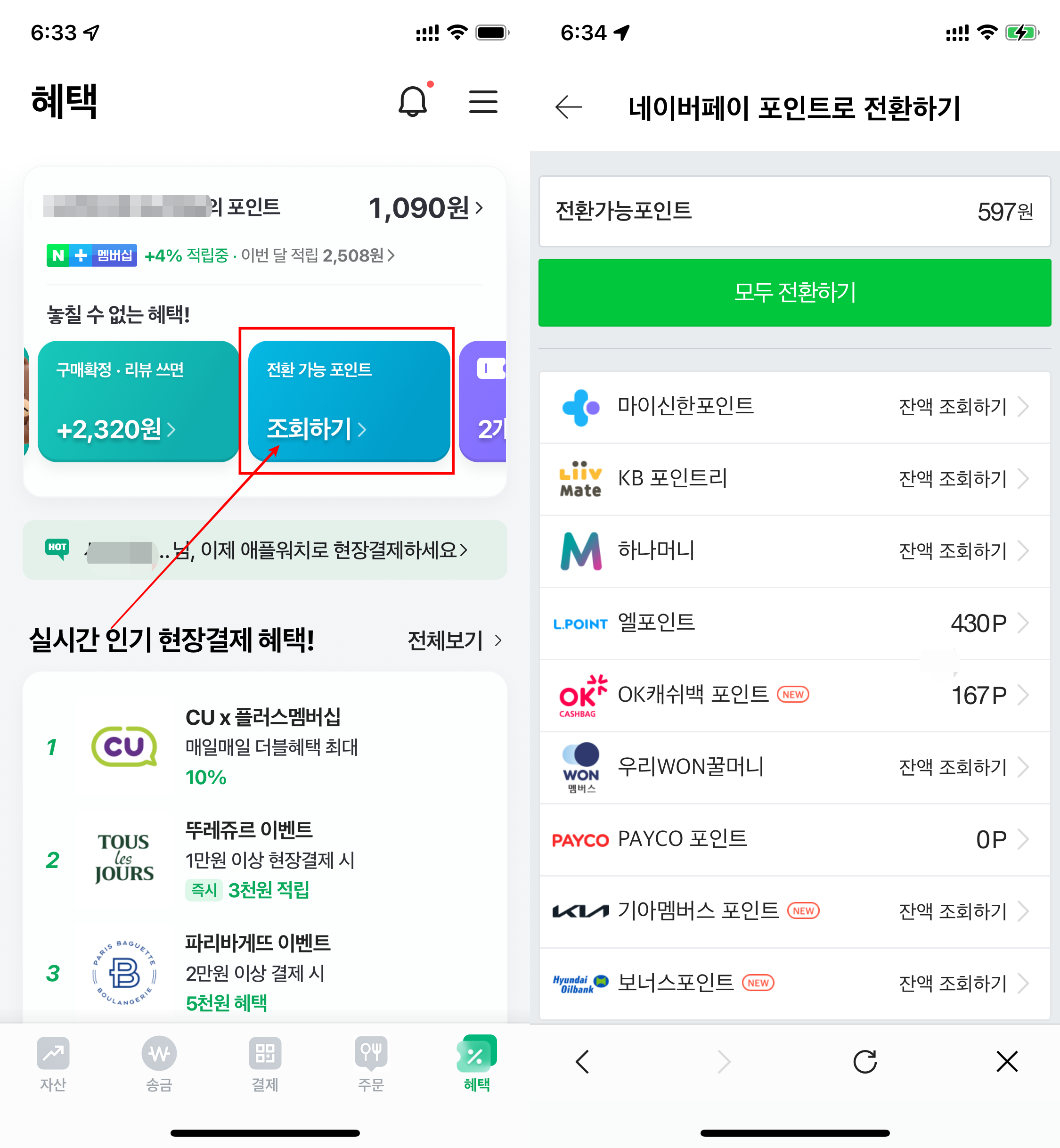 네이버페이 카드포인트 멤버십포인트 전환방법