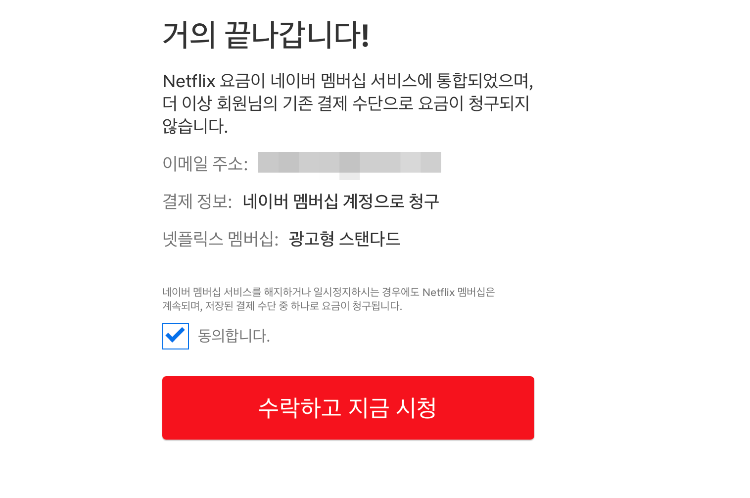 광고형 스탠다드로 연결 시 추가 요금 없이 무료로 연결이 되며 기존 가입했던 결제 수단으로 요금이 청구가 되지 않게 설정이 되었습니다. 이제 네이버플러스 멤버십을 통해서 무료로 넷플릭스를 이용할 수 있습니다.