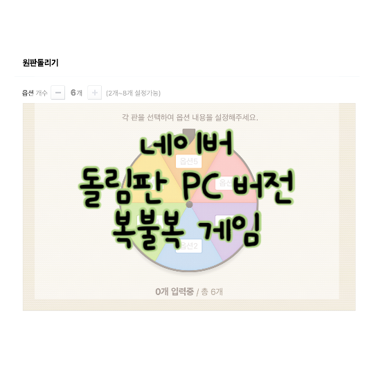 네이버 돌림판은 간단한 복불복 게임으로 간편하고 빠르게 진행할 수 있는 복불복 게임입니다. 여러가지 방법으로 네이버 돌림판을 이용할 수 있습니다. 돌림판에는 원하는 상품이나 이름을 넣어서 돌릴 수 있습니다. 돌림판의 확률은 모두 동일합니다. 그러나 확률을 다르게 하는 방법도 있으니 참고해보시길 바랍니다.