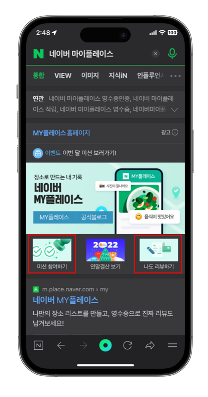네이버 영수증 포인트 적립을 위해서는 네이버 마이플레이스를 이용해서 적립이 가능합니다. 이때 주의해야할 점은 PC로는 적립이 되지 않고 모바일로만 적립이 가능한 것을 참고하시면 좋겠습니다. 쉽게 적립하기 위해서는 매번 검색을 하는 것보다 바로가기를 통해서 홈화면에 하나 꺼내 놓는 것을 추천드립니다.