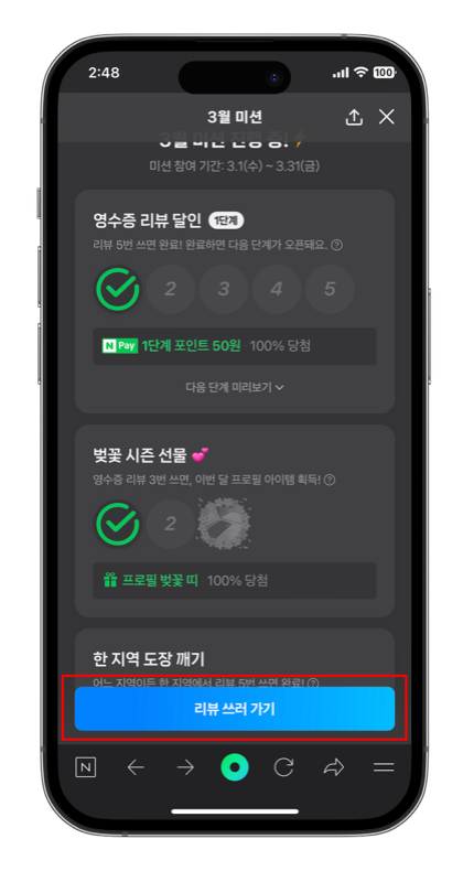 매장이 깔끔하다. 친절하다. 가성비 있다 등 다양한 선택지에서 쉽게 돌라서 등록이 가능합니다. 네이버 영수증 적립은 하루 최대 5회로 제한이 되어 있습니다. 리뷰를 작성하는 것은 제한이 없지만 적립만 제한이 있다는 것을 참고 하시길 바랍니다. 일일 기준 첫방문은 50원, 재방문은 10원 적립이 되다보니 같은 곳을 방문해서 등록하는 것보다 다양한 곳의 영수증을 등록하는 것을 추천드립니다.