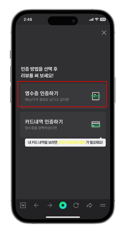 보통 영수증이 있다면 가장 간단하게 사진을 찍어서 등록하는 것이 좋겠습니다. 영수증이 없다면 카드내역으로 인증이 가능합니다.