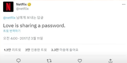 2017년도 넷플릭스 트윗을 보면 비번 공유는 사랑이라는 소릴 해놓고 이제 와서 말바꾸는 넷플릭스