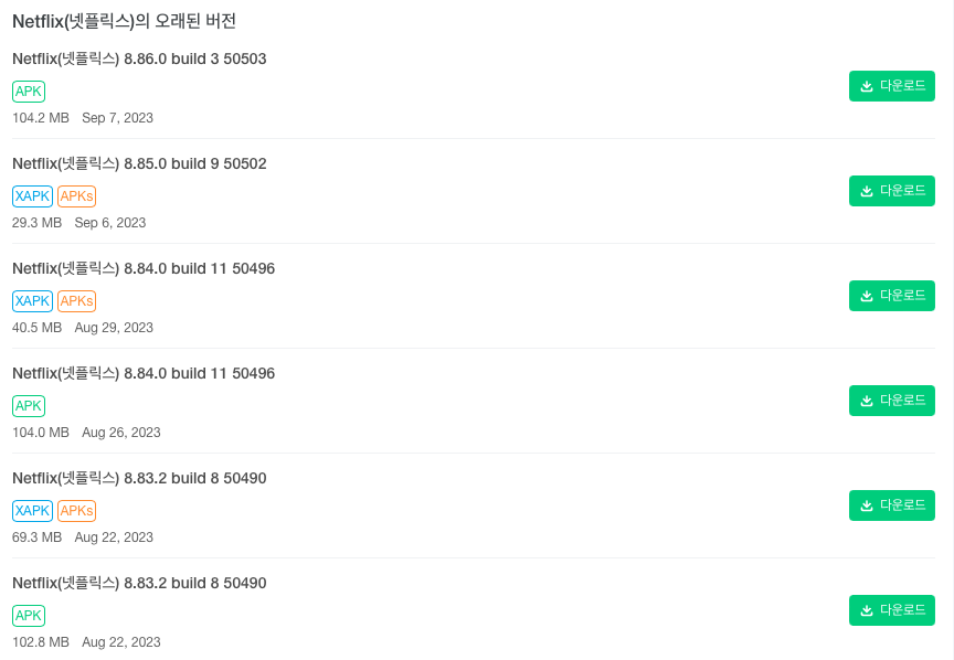 넷플릭스는 전세계 최대 스트리밍 사이트로 다양한 영화와 드라마 볼거리가 많은 서비스입니다. 그렇다보니 다양한 볼거리가 많습니다. 그러나 버전이 올라갈 수록 구형기기나 호환이 안되는 제품들이 있을 수 있습니다. 그래서 구버전을 다운로드 받는 방법을 알려드리겠습니다.