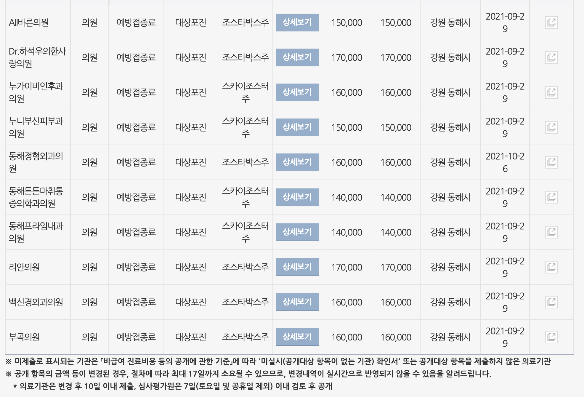 나오는 것을 본다면 동해시에서 만약 접종한다면