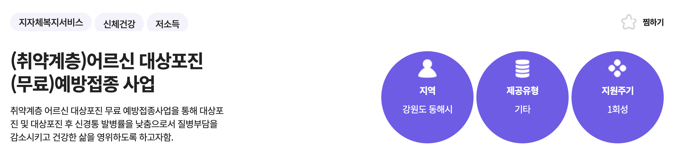지자체에서 복지정책으로 무료 예방접종을 지원하고 있습니다.