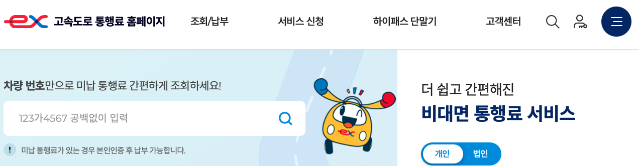 룸미러 하이패스 명의를 변경하기 위해서는 고속도로 통행료 홈페이지에서 변경이 가능합니다. 아래 바로가기를 이용하면 따로 검색없이 접속이 가능합니다.