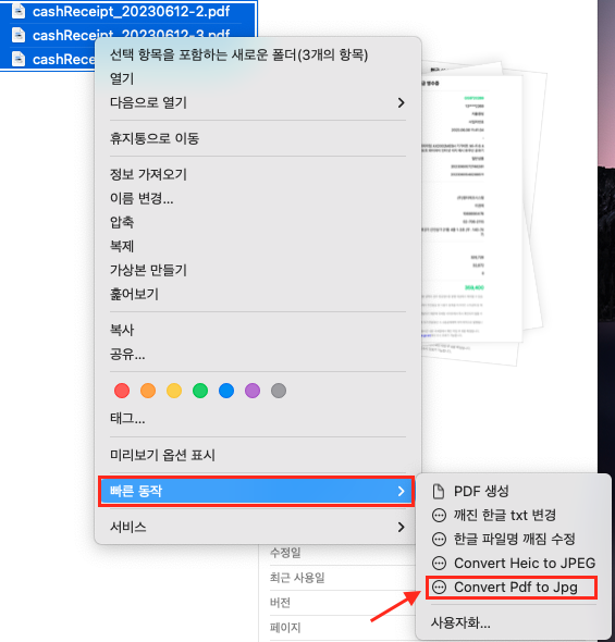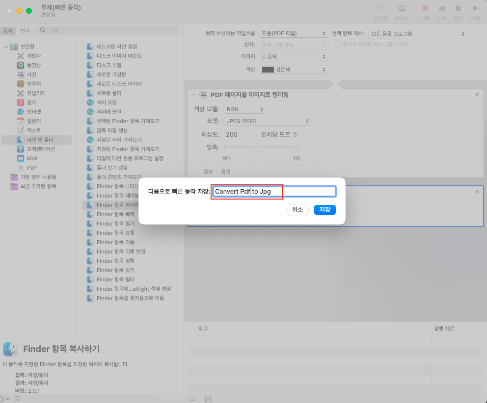 맥 PDF to JPG 변환 빠른 동작 등록방법