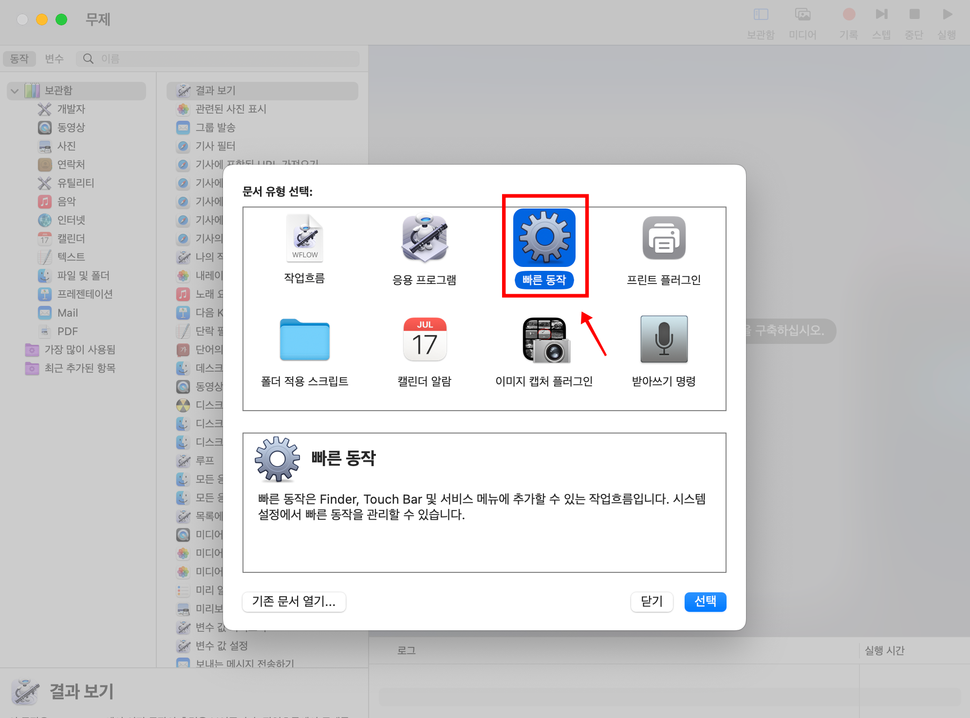 6. Command + S 눌러서 빠른 동작을 저장해줍니다. 이때 동작명은 한글이나 영어 아무렇게 해도 됩니다.