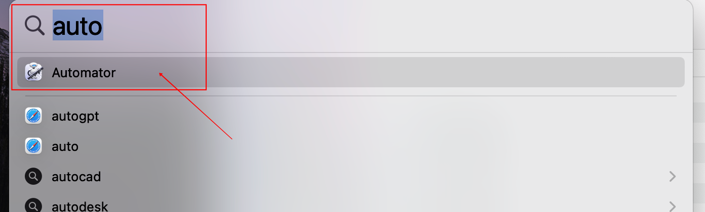 2. Command + 스페이바 | Automator 검색 후 들어갑니다.