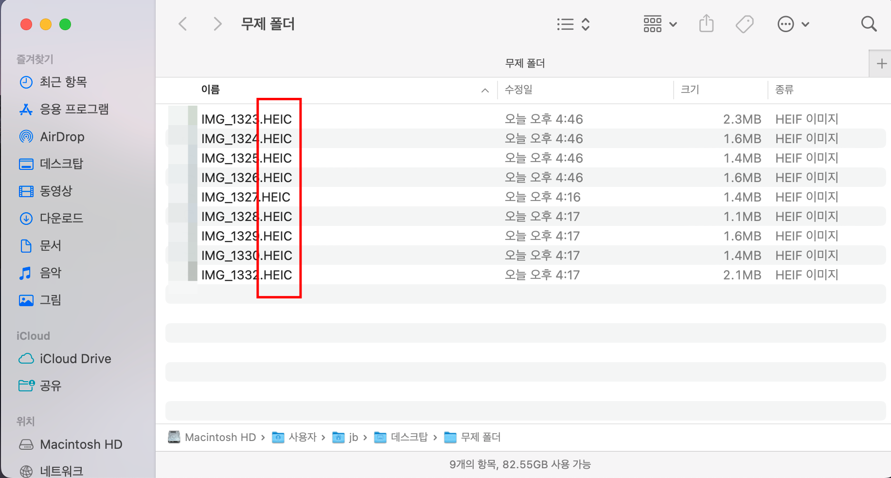 1. Heic 사진파일이 있는 것을 볼 수 있습니다.