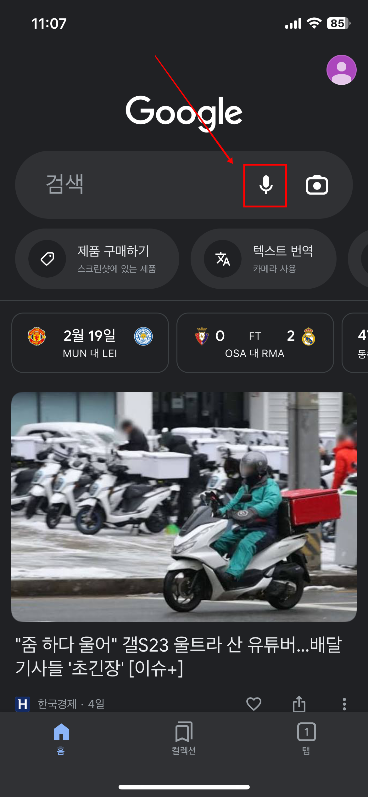 위 방법은 잘 알려져있다면 이 방법은 모르시는 분들도 많아서 알려드립니다. 이 검색방법은 그냥 흥헐거기러나 휘파람을 불어서 내가 아는 대충 멜로디를 불러보는 것만으로도 노래를 찾을 수 있습니다. 바로 구글의 AI를 이용한 검색방법입니다. 노래 가사를 정확히 알지 못하더라도 아래 구글 어플어플에서 마이크를 누르고 노래검색을 이용하면 휘파람을 불어도 검색이 됩니다.