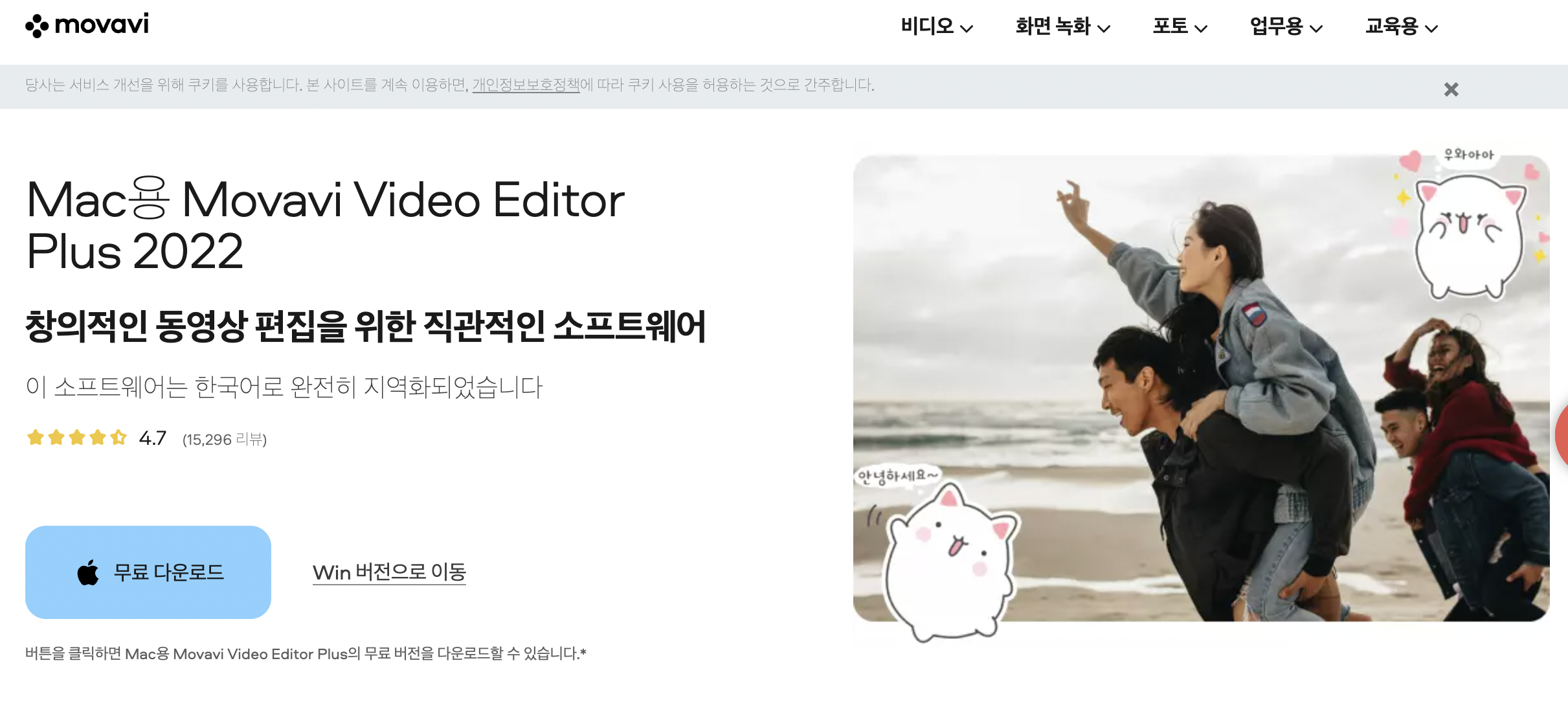 세번째 추천 프로그램은 바로 모바비입니다. 가장 무료 프로그램 중 전문적인 프로그램이라 할 수 있겠습니다. 개인적으로는 전문 프로그램을 접하기 전에 무료 체험으로 해보는 것도 추천하는 프로그램입니다. 윈도우 용과 맥용 두가지가 있습니다. 초보 프로그램이라 할 수 있겠지만 영상 편집 퀄리티는 전문 영상편집 프로그램 못지 않은 프로그램이라 할 수 있겠습니다. 위에 알려드린 초보용 영상편집 프로그램을 조금 뛰어넘는 기술을 갖추고 싶다면 모바비 Movavi 추천드리겠습니다. 무료 다운로드 링크는 아래를 참고 하시길 바랍니다.