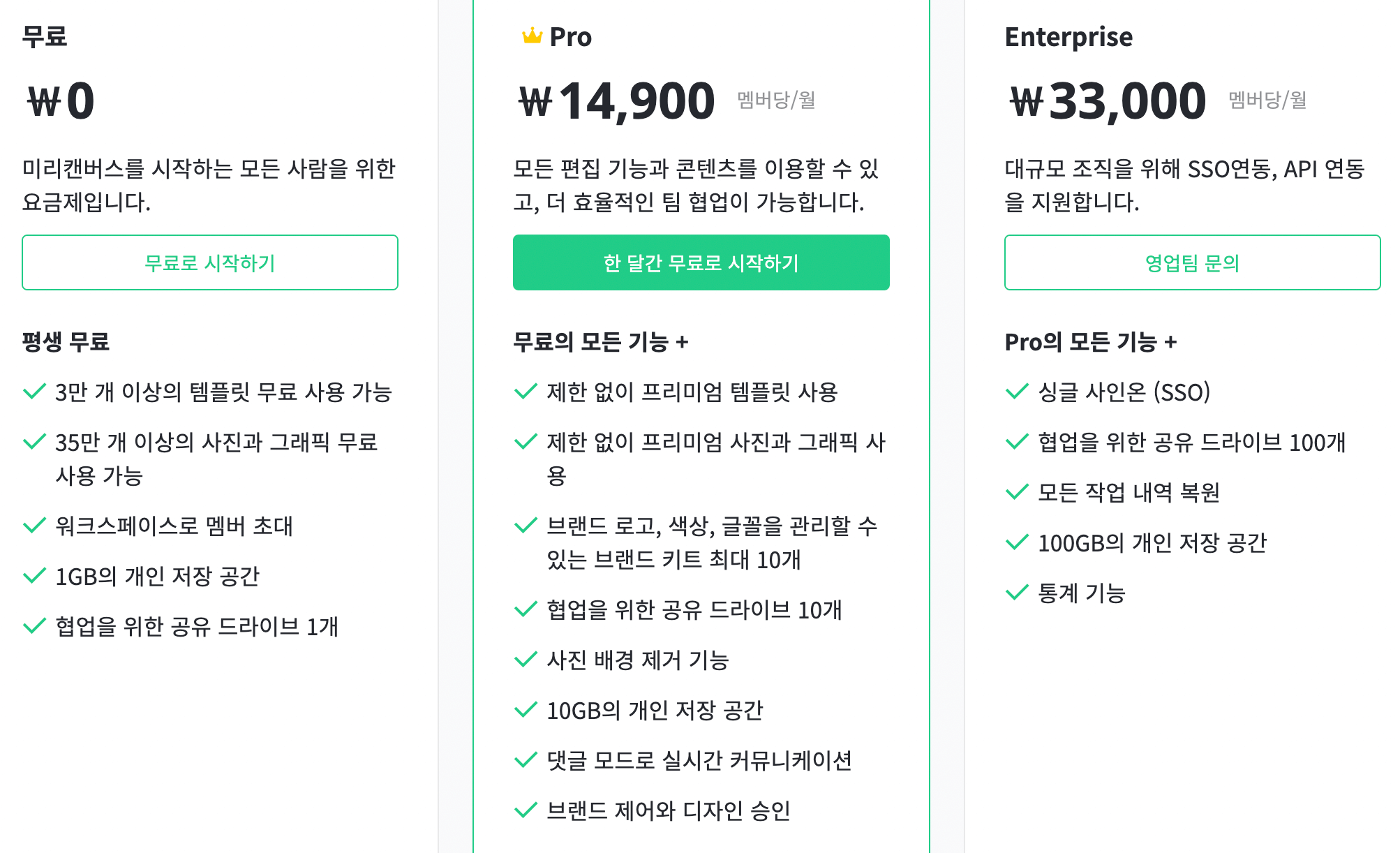 그런데 결국 미리캔버스도 요금제를 도입하게 되었네요.