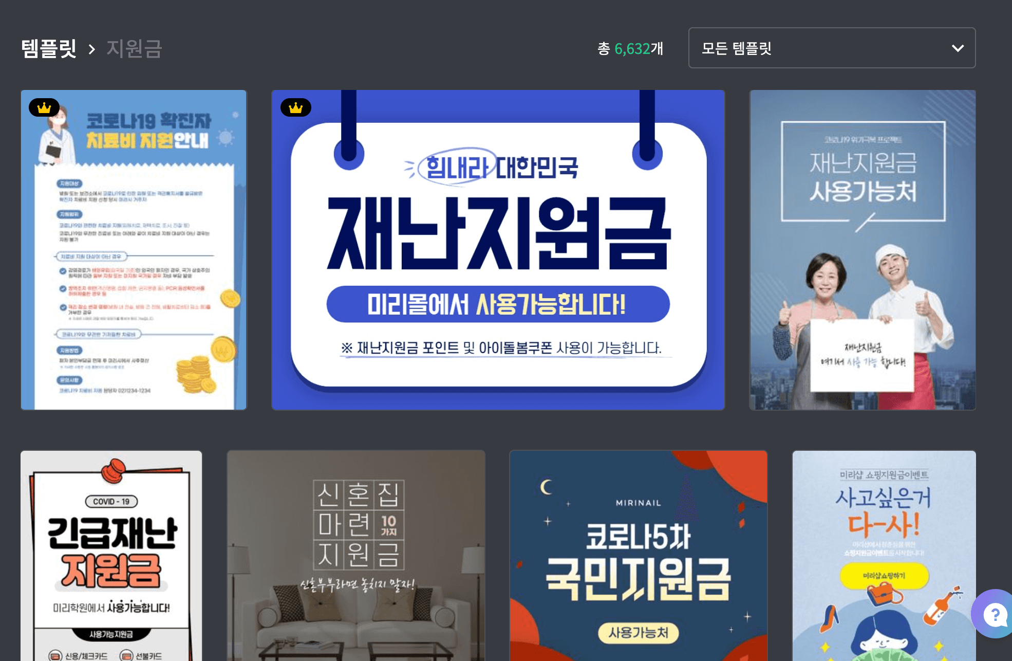 아래와 같이 이전에 없었던 템플릿에 왕관마크가 생겼습니다.