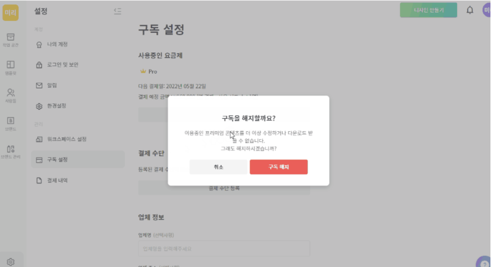 구독을 미리 해지하시면