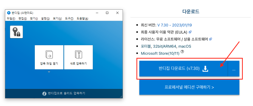반디집 무료 압축프로그램 다운로드는 홈페이지에서 받는 것을 추천드리겠습니다. 아래 홈페이지 다운로드 링크를 첨부하였으니 참고하시길 바랍니다. 반디집은 윈도우 7/8/10/11 까지 이용이 가능하며 Mac에서도 사용이 가능합니다. Mac의 경우에는 무료가 아닌 유료라는 점 그래서 맥용 압축프로그램은 다른 프로그램을 추천드립니다.