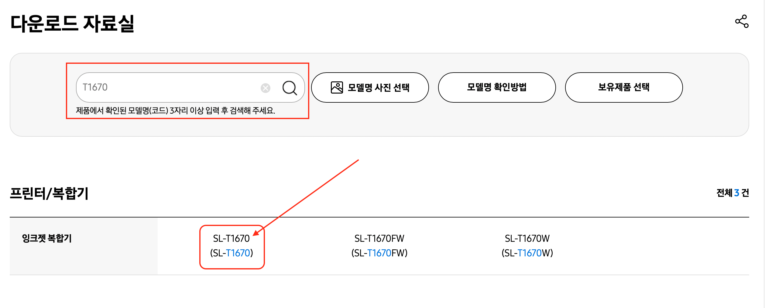삼성전자 프린터 드라이버 제품별 설치를 하기 위해서는 제품명을 알아야 설치가 가능합니다. 삼성전자 프린터 제품명을 확인하기 위해서는 어디에서 확인 할 수 있는지 알아야합니다. 삼성전자 프린터 제품명은 조작부에서 모델명을 확인이 가능합니다. 모델명은 SL-T1670, SL-T2270FW 과 같지 뒷편 알파벳과 숫자를 확인하시면 됩니다. 이렇게 확인된 제품명을 아래에 알려드린 링크에서 입력하시면 쉽게 검색이 가능합니다.