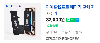 배터리교체 자가수리의 경우 인터넷에서 배터리를 구매하면 분해도구까지 주게 되는데요. 약 3만원대에 수리가 가능한 것을 볼 수 있습니다. 구형의 경우 2만원대로도 구입이 가능한 것을 볼 수 있습니다.