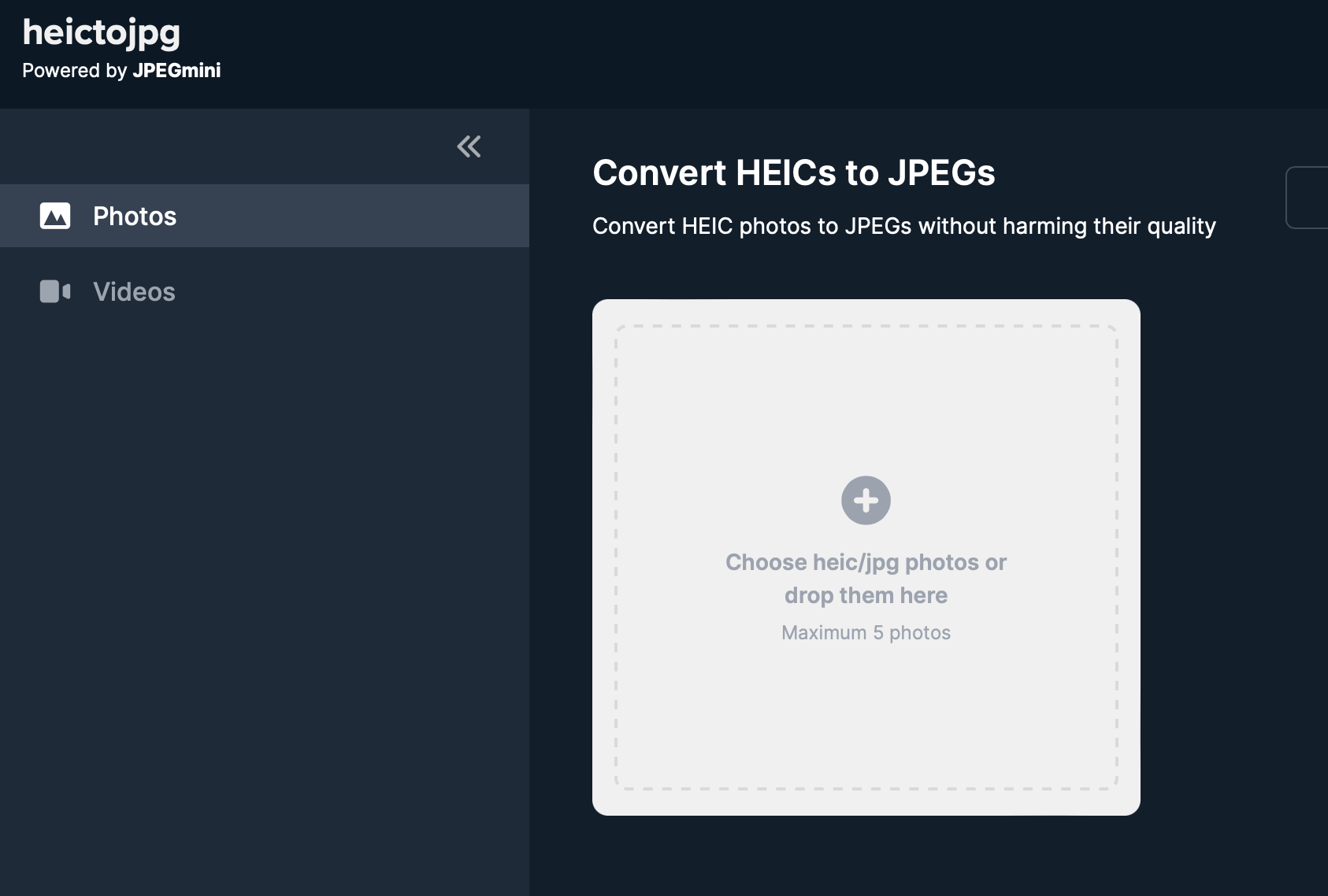 일단 가장 간편한 변환 방법은 HEIC to JPG 변환 사이트를 이용하는 것 입니다. 간단하게 변환을 한다면 아래 변환 사이트를 이용해서 변환한다면 따로 어플이나 프로그램을 설치하지 않고 간단하게 변환이 가능합니다. 이는 스마트폰이나 태블릿, PC 모든 기기에서 간편하게 이용이 가능한 것이 장점입니다. 단점은 5장까지 된다는 것인데요.