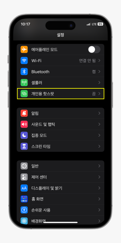 설정 - 개인용 핫스팟 - Wi-Fi 암호 : 암호 변경