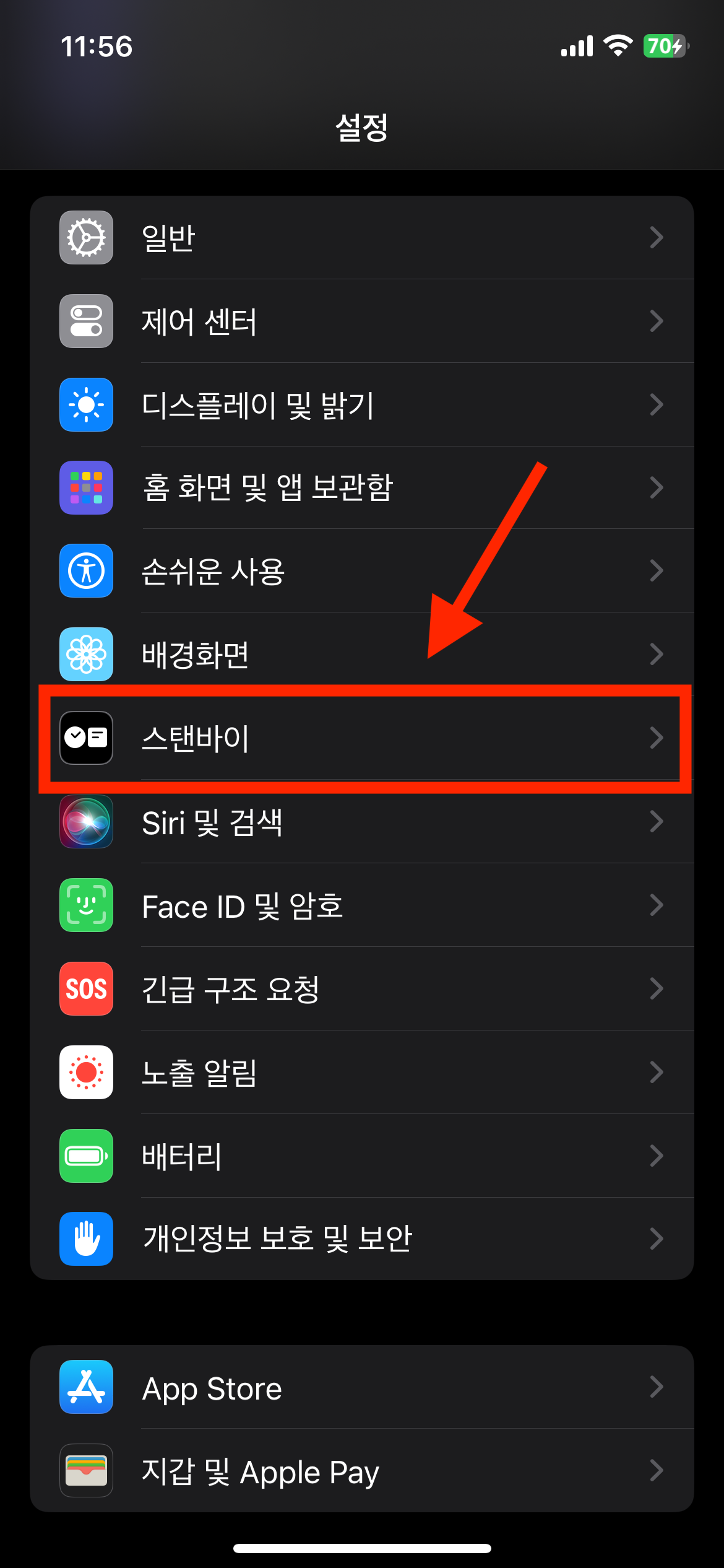 이렇게 스탠바이를 설정하고 난 다음 문제가 하나 있습니다. 자꾸만 스탠바이 화면이 꺼진다는 것인데요. 이것은 아이폰의 디스플레이가 OLED로 변경이 되면서 애플에서는 번인현상을 줄이기 위해 노력하고 있습니다. 그렇다보니 상시화면디스플레이 AOD 설정을 넣어주지 않았기 때문에 문제가 되는 부분입니다.
