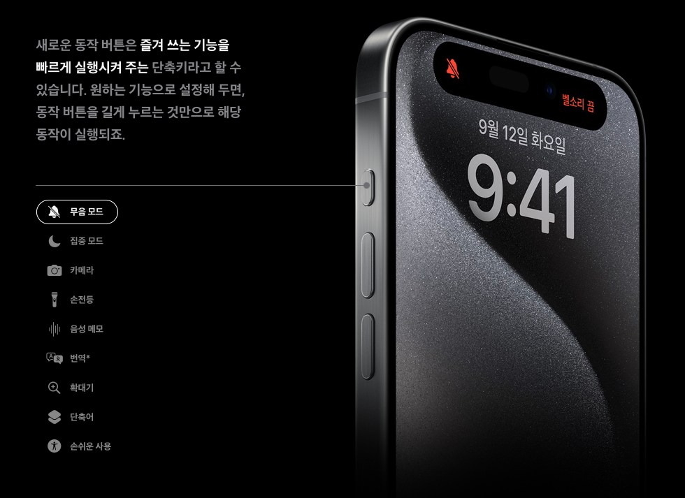 | 액션버튼 탑재 | 기존 무음 스위치 탑재 | 액션버튼 탑재 |