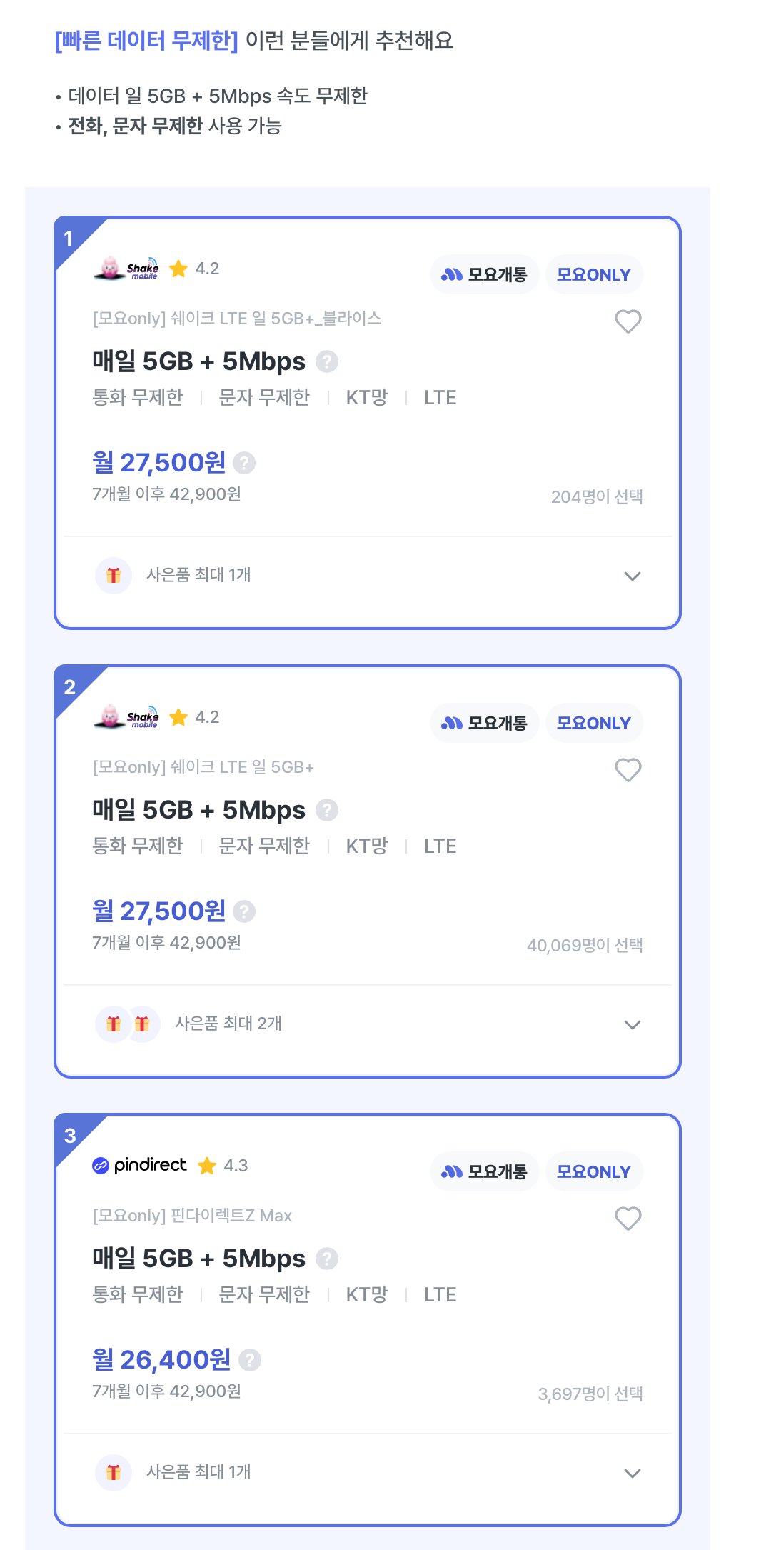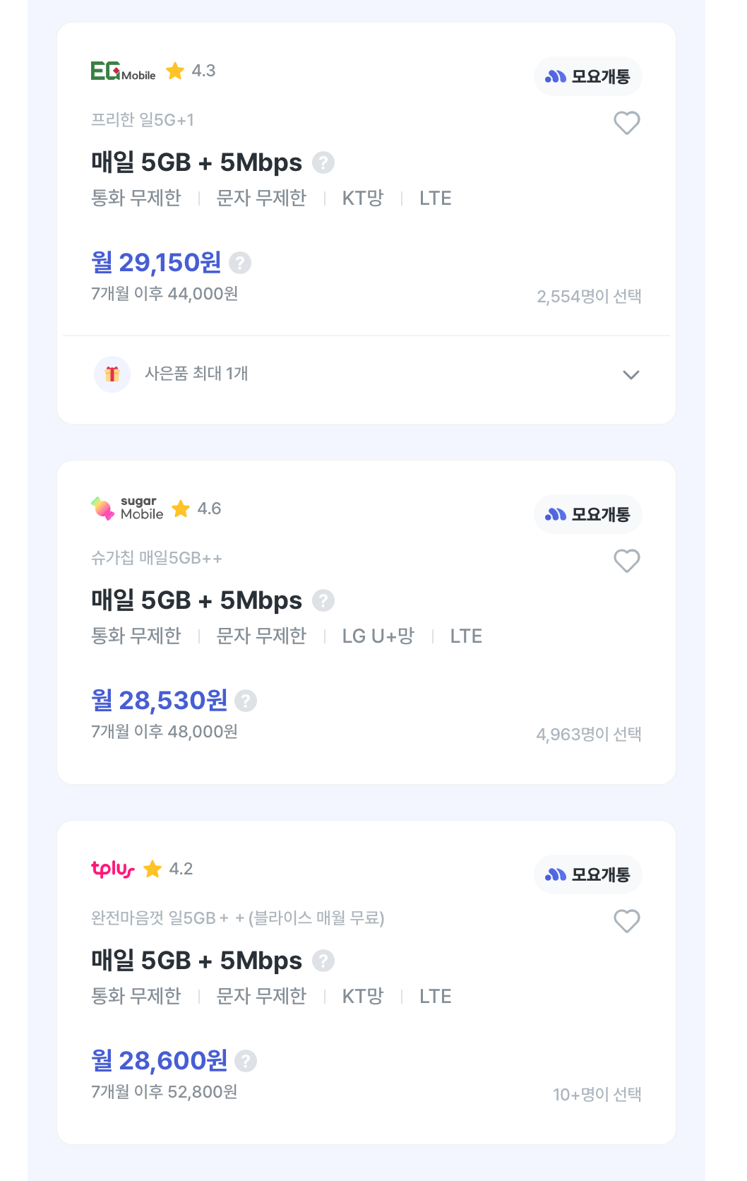위에 알려드리는 가성비 요금제를 잘 살펴보시고 합리적인 요금제를 선태개해 보시길 바랍니다.