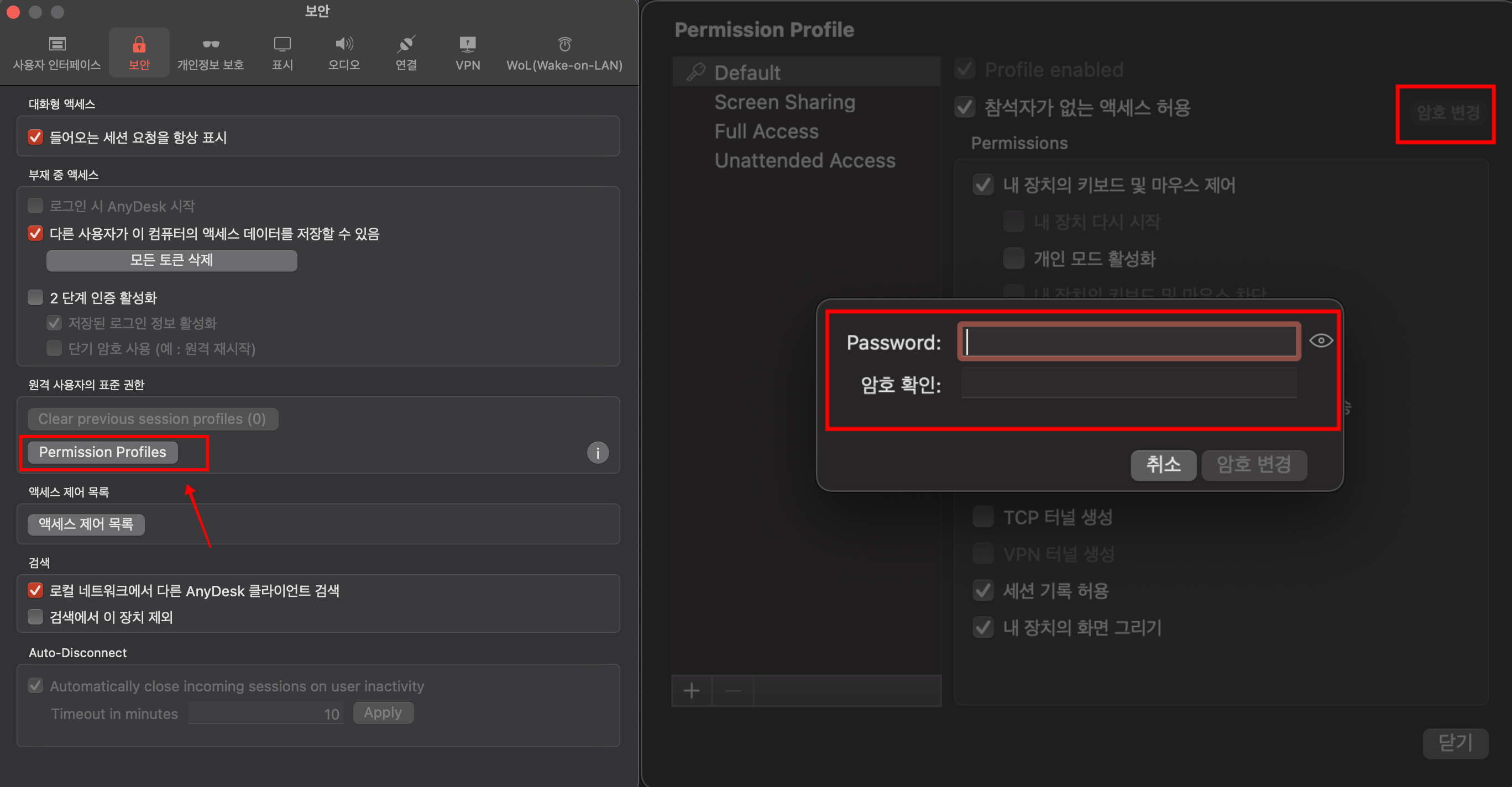 두번째 방법은 보통 다른사람의 기기가 아닌 내 기기를 원격으로 사용하기 위한 것으로 자리에 없는데 기기의 승인을 눌러줄 수 없을 때 사용하는 원격제어방법입니다. 이것은 보안승인 설정을 하면 되는데요.