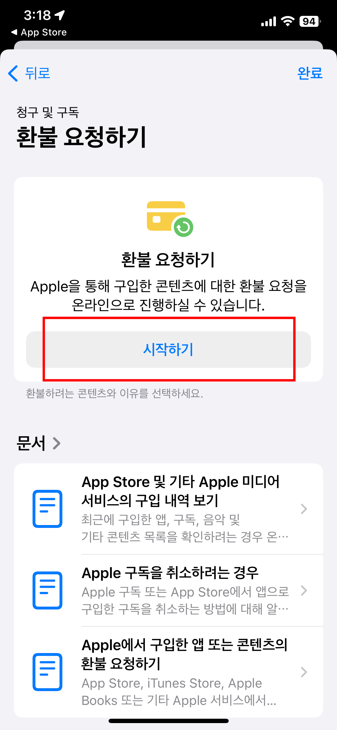 4. 환불 요청하기를 눌러서 환불을 시작합니다.