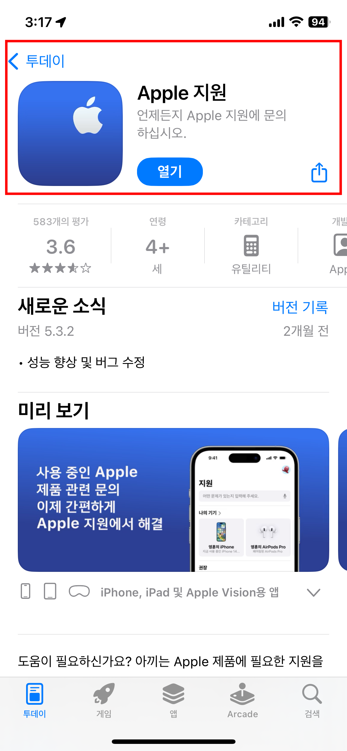 1. 앱스토어에서 Apple 지원 어플을 다운로드 합니다.