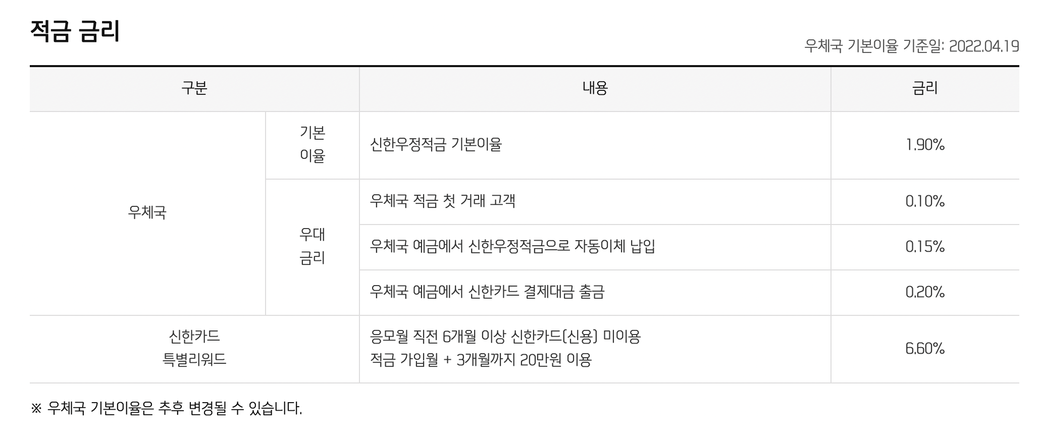 - 우체국 예금에서 신한카드 결제대금 출금 0.20%