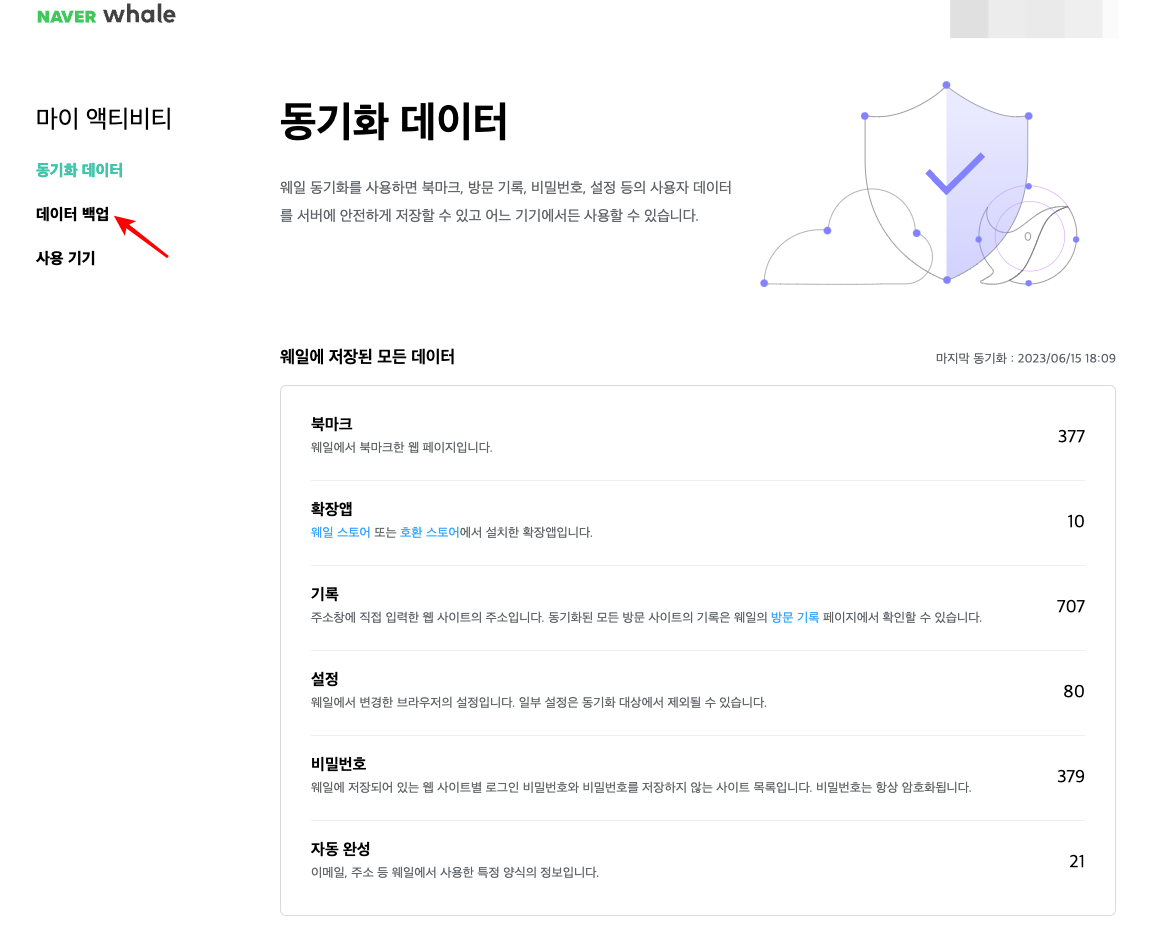 네이버 웨일 자동 동기화