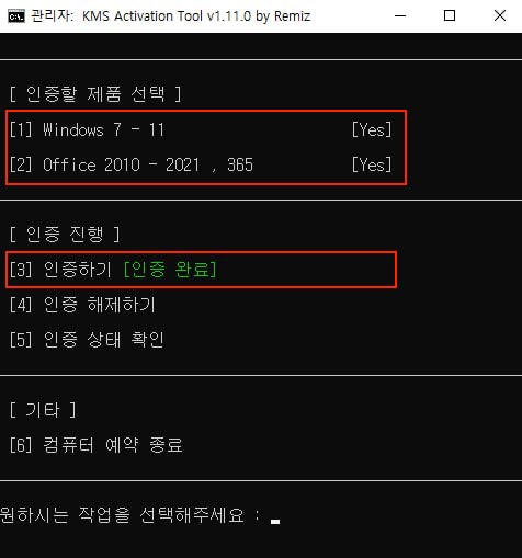 윈도우 오피스 무설치 KMS 정품인증 방법