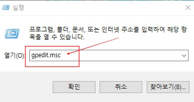 1) Win + R 을 눌러서 바로 실행창을 열고 명령어 gpedit.msc 를 입력합니다.