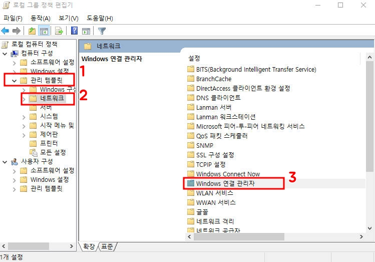 관리 템플릿 - 네트워크 - windows 연결 관리자