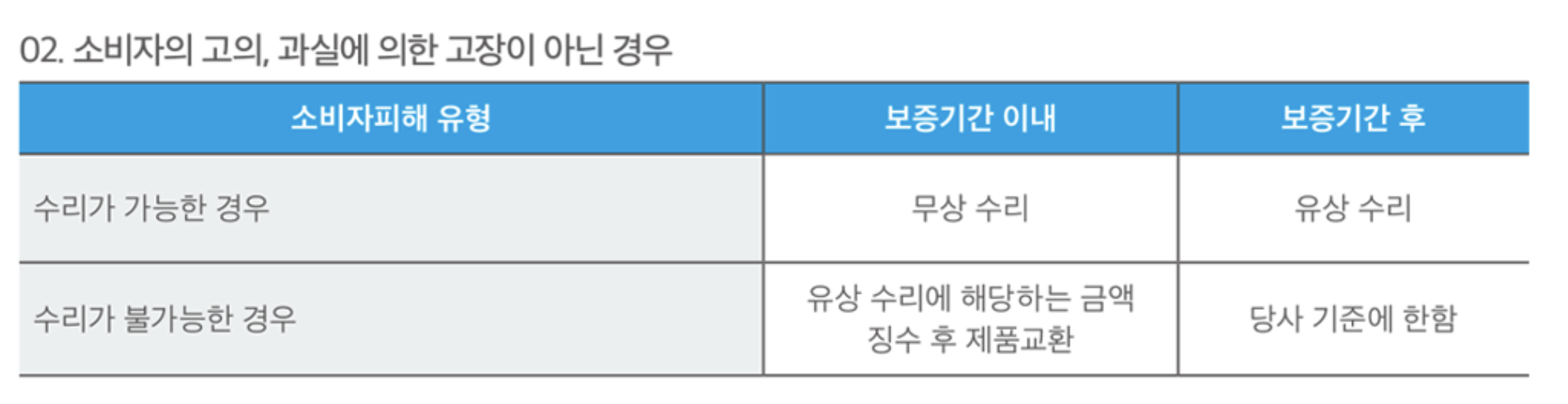 무상 AS를 받기 위해서는 아래와 같은 기준으로 진행하게 됩니다. 아래 표를 참고 하시길 바랍니다.