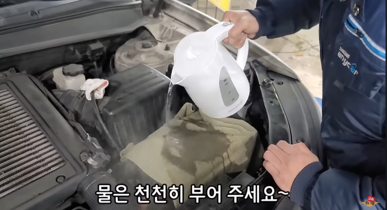 - 배터리를 수건, 안쓰는 옷 등을 감싸고 뜨거운 물을 붓는다