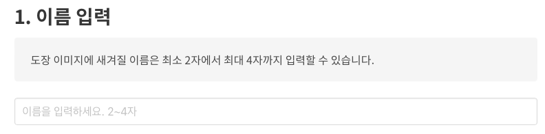 1. 이름을 입력합니다. 이름은 최소 2글자에서 최대 4자까지 가능합니다.