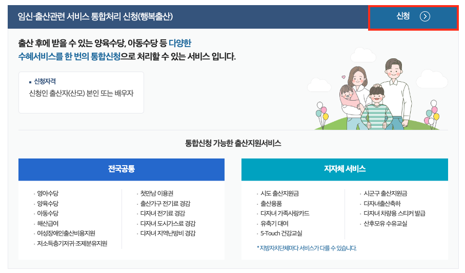 행복출산 출산지원금 원스톱 신청방법
